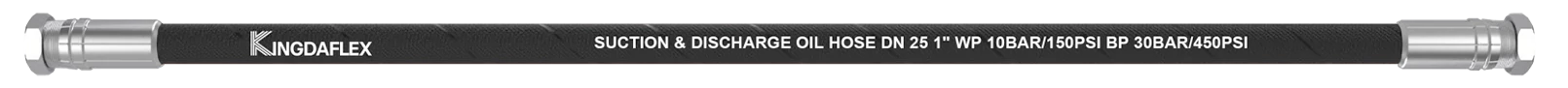 Mandrel built heavy-duty oil suction and discharge hose for handling grades of gasoline or petroleum oils of aromatic content up to 50% from tank truck, in dispensing station etc, during winter/summer seasons and withstands full vacuum.